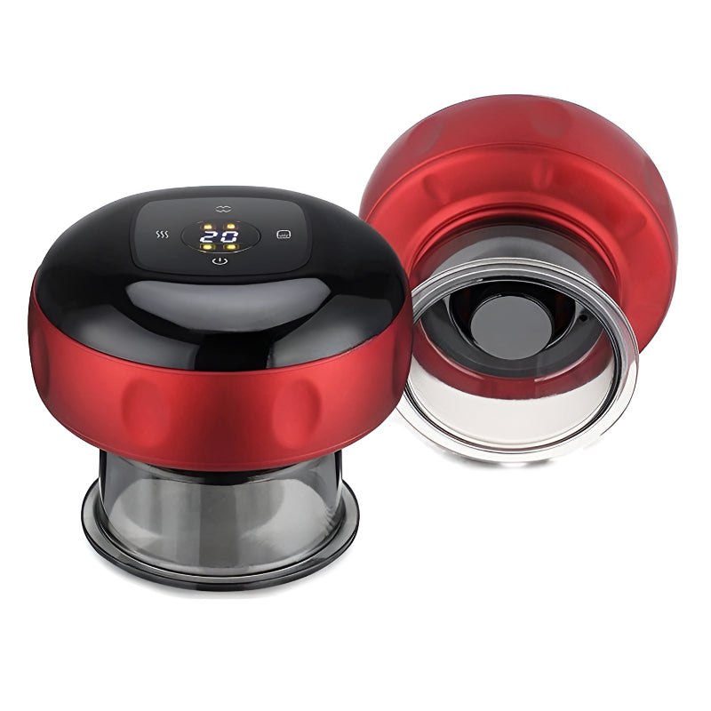 Elektrický baňkovací masážní přístroj je moderní vylepšení tradiční baňkové terapie, které kombinuje dynamický podtlak, uklidňující teplo a vibrační masáž pro kompletní uvolnění svalů.