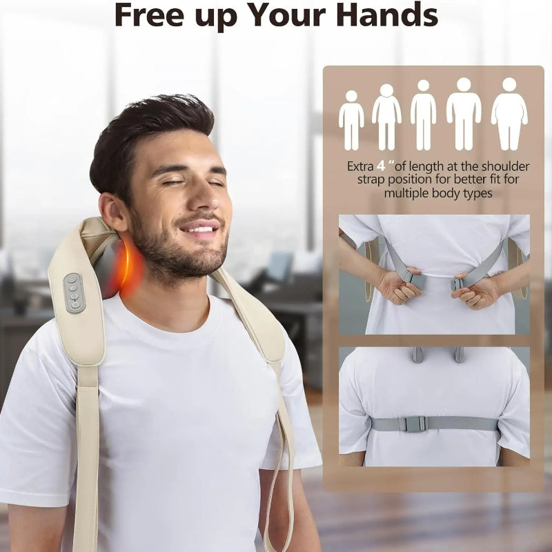 Shiatsu masážní přístroj na krk a ramena kombinuje hlubokou hnětací masáž s uklidňujícím teplem, které uvolňuje napětí, ztuhlost a únavu. Jeho ergonomický design s obepínáním a nastavitelné popruhy vám umožní snadno zaměřit masáž na krk, ramena, záda i pas, a přinést tak zážitek ze spa přímo k vám domů nebo do kanceláře.