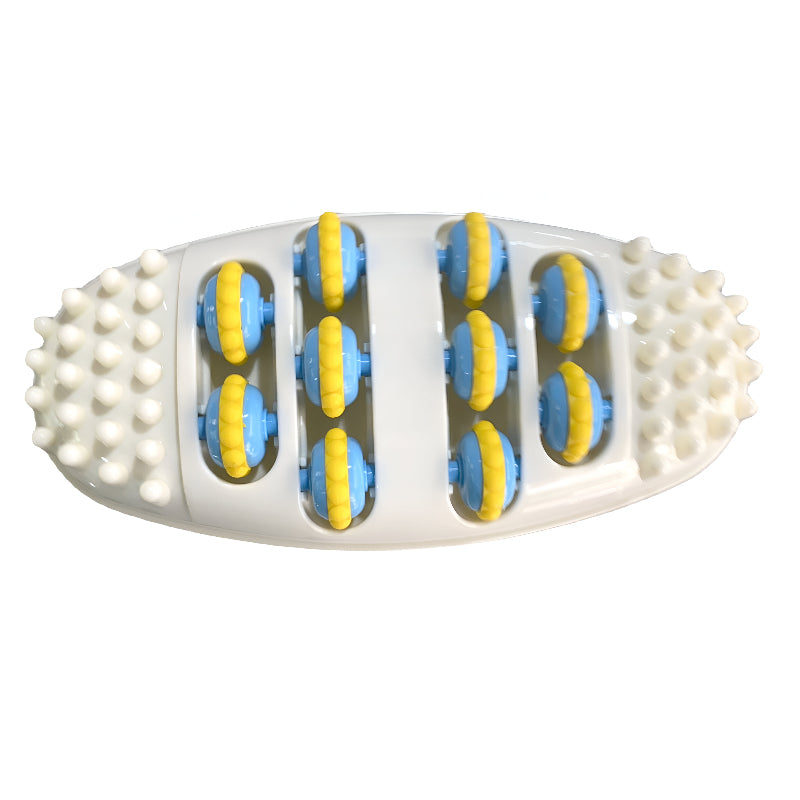 Masážní váleček na nohy s reflexologií je navržen tak, aby stimuloval tlakové body a zlepšoval krevní oběh pomocí jednoduchých pohybů válení. Vybavený několika texturovanými masážními kolečky a akupresurními uzly pomáhá snižovat únavu, uvolňovat napětí a poskytovat uklidňující úlevu po dlouhém dni stráveném stáním nebo chůzí.