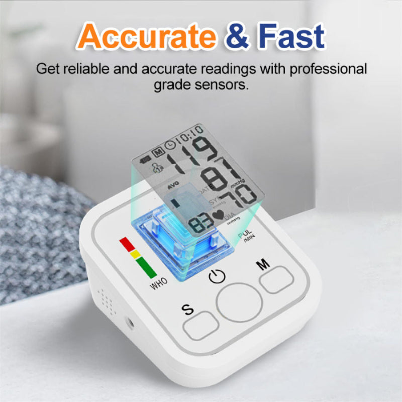 Automatický tlakoměr na paži poskytuje rychlé, přesné a spolehlivé měření krevního tlaku a srdečního tepu. Navržený s přehledným digitálním displejem a ovládáním jedním tlačítkem, zajišťuje jednoduché použití doma, v ordinacích nebo na cestách. Kompaktní a přenosný, je nezbytným pomocníkem pro sledování zdraví srdce s jistotou.